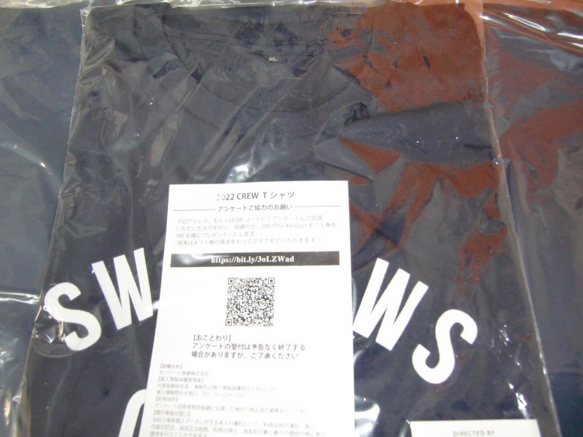 CREW Tシャツは、2022年スワローズファンクラブ プラチナ、ゴールド会員カテゴリーBの入会特典。