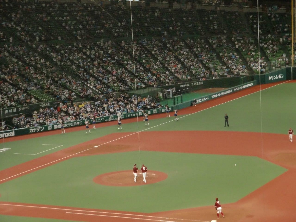 ベルーナドームでの埼玉西武ライオンズ戦、2023年を2枚、2022年を1枚、2021年を1枚(2021年の当時・メットライフドーム)。