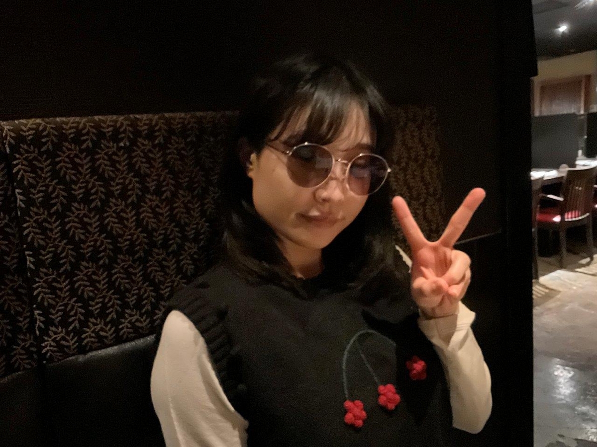 グラサンを掛けたかなこさんは、2023年12月28日に忘年会を行った際に撮影。