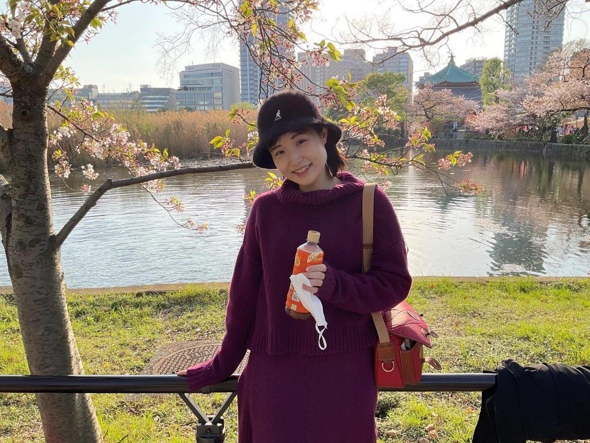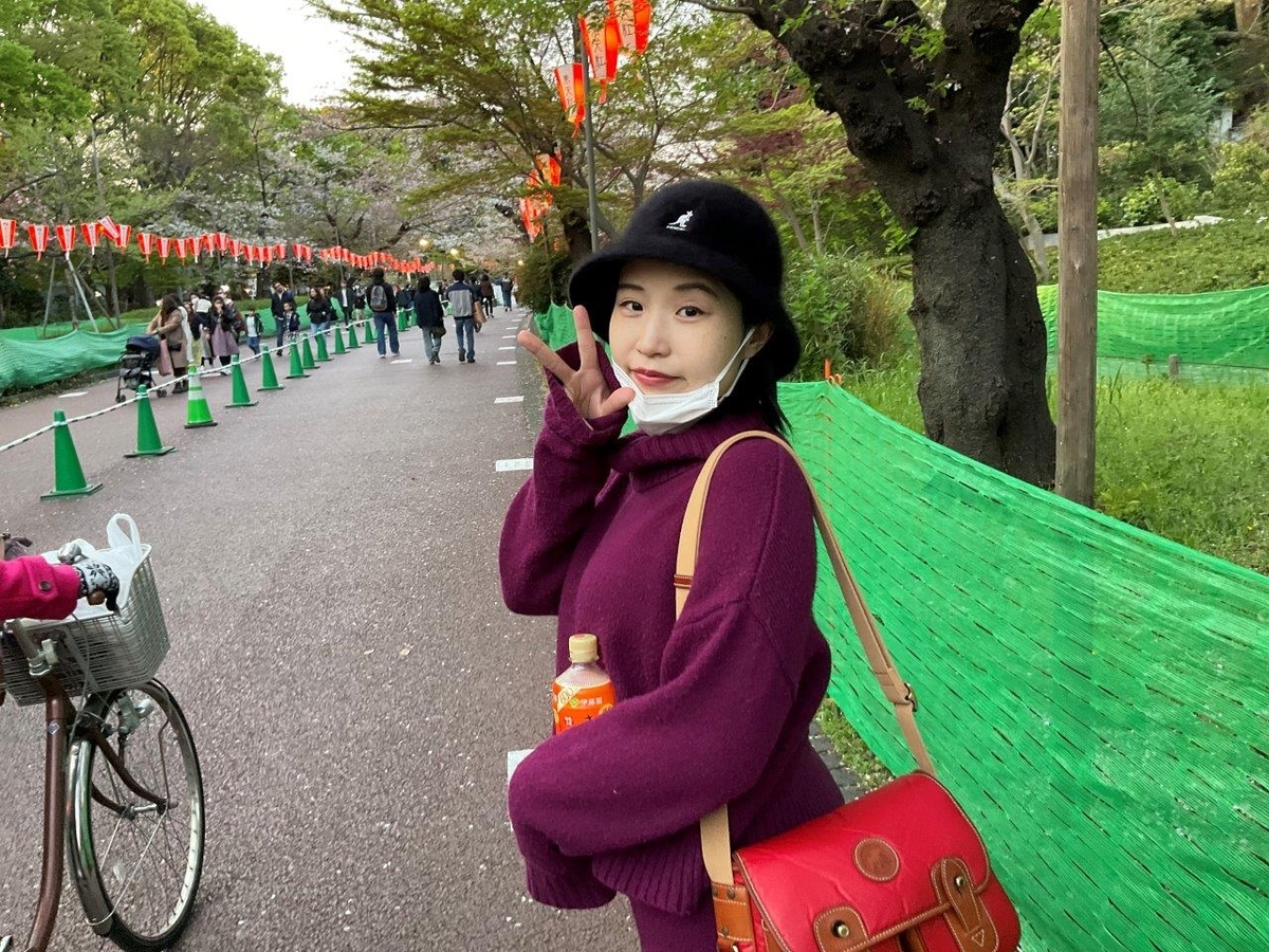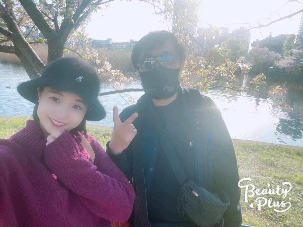 桜木かなこさんは、自分と初めて会った時の写真を紹介していたが、この写真は2023年4月3日、上野恩賜公園へ花見に行った時なので違う。笑