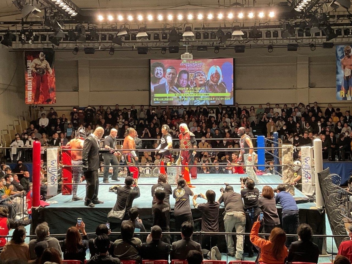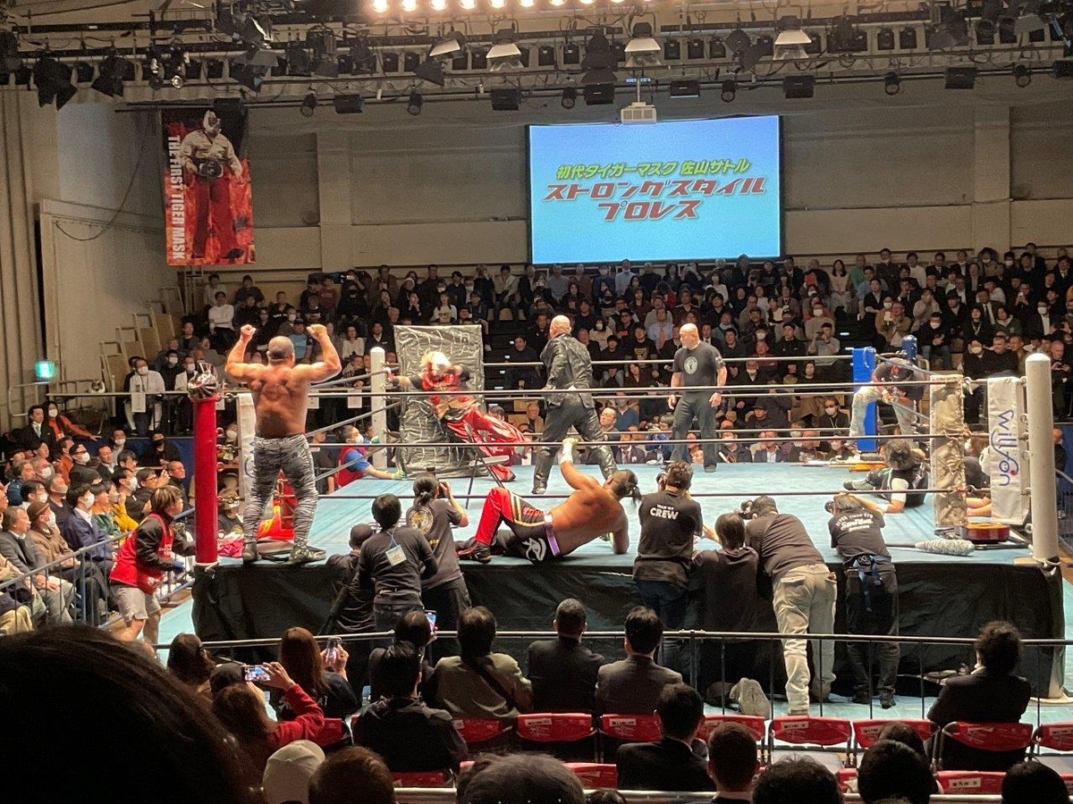 大仁田は最後に、同世代の初代タイガーマスク・佐山聡氏に「頑張れ佐山!1!2!3!ファイヤー!」とエールを送り、リングを降りた。