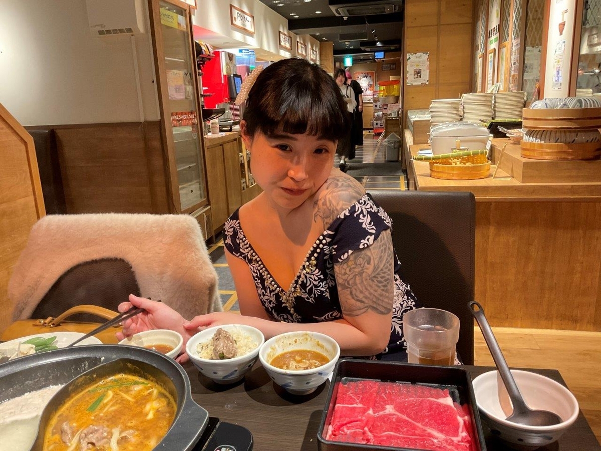 5月上旬、桜木かなこさんとしゃぶしゃぶ食べ放題の店に行ってきた。